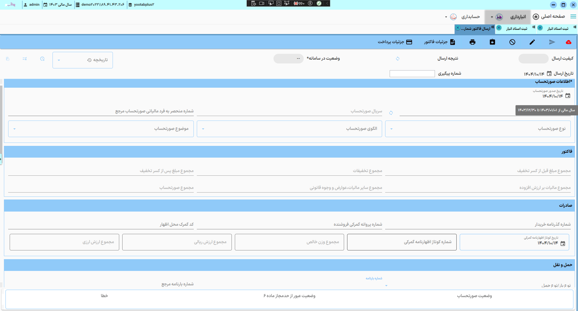 ۲-پس از نمایش صفحه لاگین با نام کاربری : admin و رمز عبور: ۱۲۳ وارد شوید.
